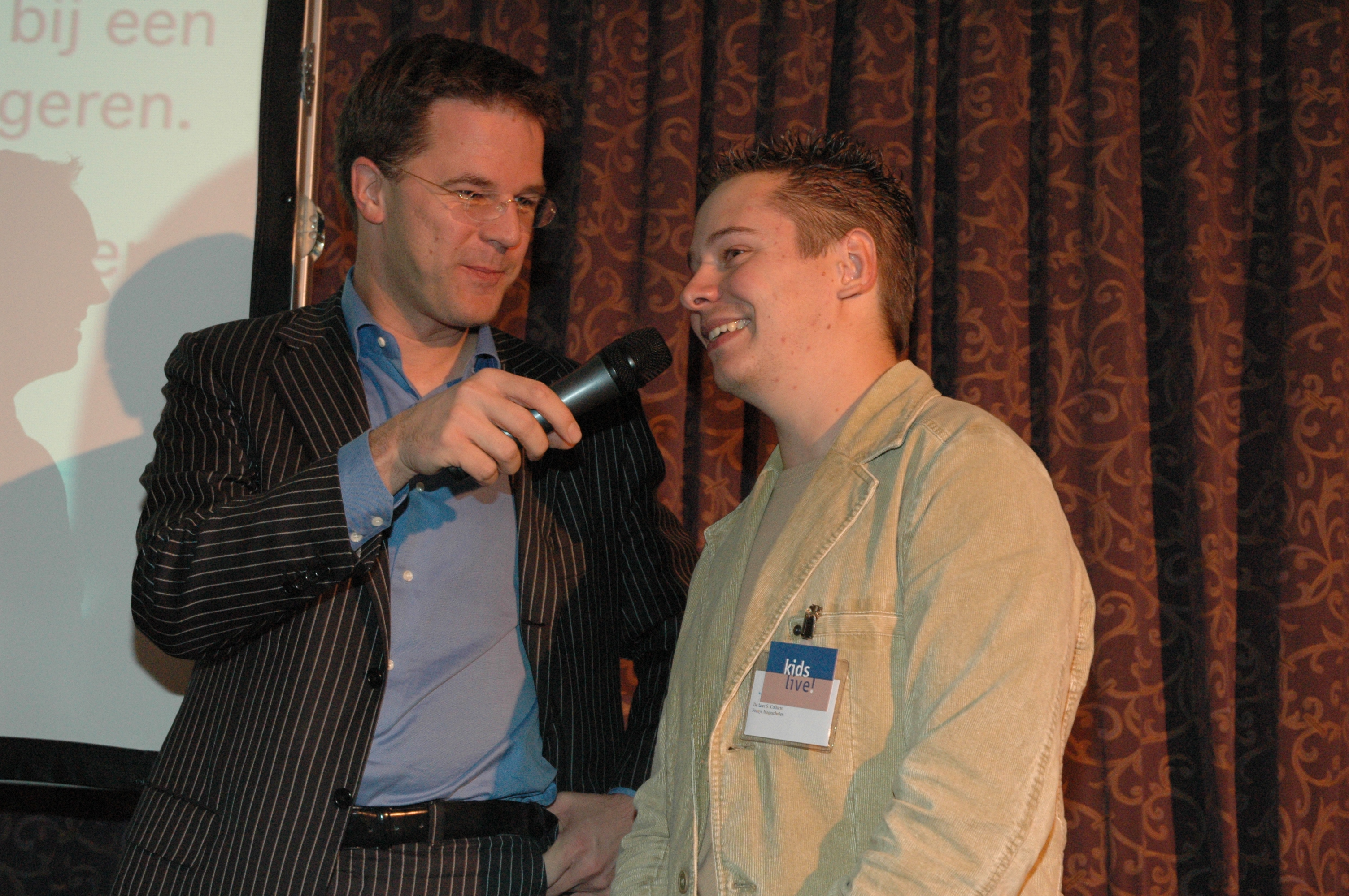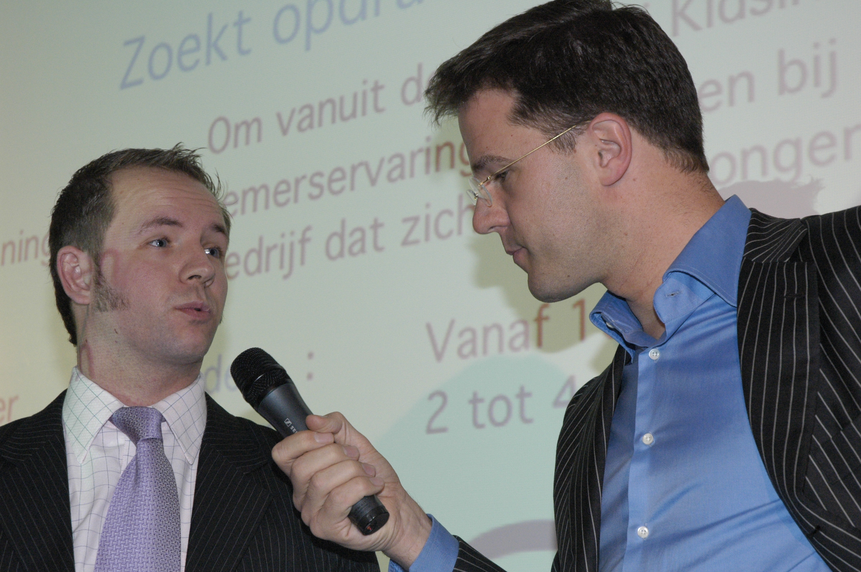 Mark Rutte (Prime Minister of the Netherlands since 2010) interviewing OPEDUCA BusinessClass Finalist Sven Collaris in 2005