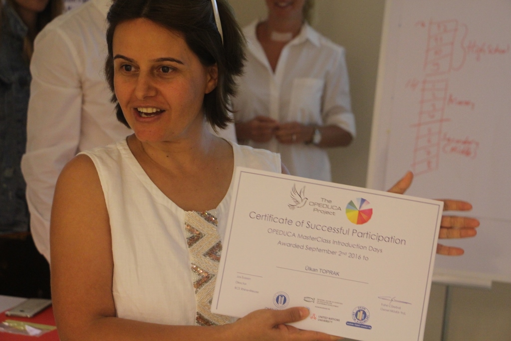 Trying out MasterClass in various countries where schools operate under different rules, regulations, restrictions and challenges, it was found the concept holds a universal quality. Without adoption, using the same order, wording, images and examples, the approach proved as effective in amongst others Turkey, Qatar and Austria as it is in the Netherlands. The pictures below were taken at OKAN University, where teachers from primary and secondary education followed their MasterClass under the guidance of Aytac Gogus, Associate Professor Educational Science Department. Although new to the concept and practice of OPEDUCA, the Teachers delivered nothing less than excellent performances.